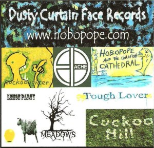 The actual material is incredibly varied, with seventeen tracks from seven artists, ranging from Cuckoo Hill and Tough Lover’s acoustic folk, through Ed Ache’s acoustic punk, to Rhodes’ own Hobopope And The Goldfish Cathedral’s pronk, via Meadows’ sludge metal and hardcore, Cockdaughter’s post-rock or noise rock, and Lemonparty’s utterly unique perverted funk rock. Every act has a distinct and well defined artistic vision and pursues it creatively: this is very much local music, the product of a small scene in a specific area, but this sampler is an example of just how much creativity and expertise goes under the radar, and all of these musicians deserve wider exposure and recognition.