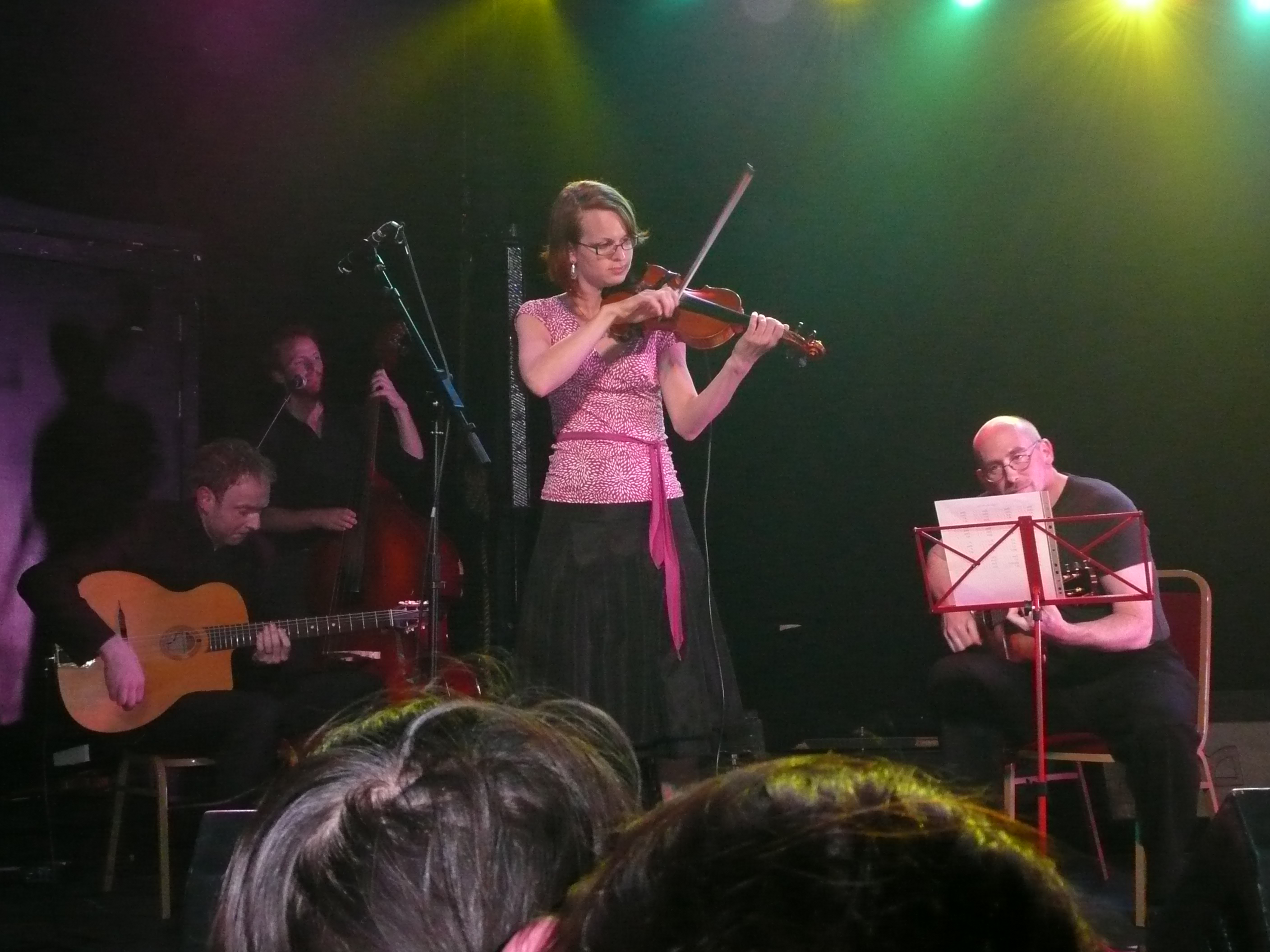 Getting to bask in the glow of Fernando’s Kitchen’s considerable draw were local gypsy jazz quartet Django’s Tiger. I have to admit that my knowledge of this strand of European jazz is limited to the obvious, Django Reinhardt and Stephane Grapelli, whose culturally specific assimilation of the idiom serves as compelling evidence that jazz was an international, transatlantic music from its early days. It’s good to see this stuff being played, since ‘early jazz’ is usually only taken to mean Dixieland.