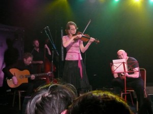 Every musician (and tonight they performed as a septet) was possessed of their own distinct personality, and, importantly in live performance, their own visual style. Centre stage, Joubert is more or less the perfect front-woman: for one thing she is tall, blond and strikingly beautiful; she is also an extremely accomplished musician, who performs with such visual kinesis, and such an expressive range of facial gestures that her stage presence is among the most commanding I’ve witnessed; she is also a skilled and passionate singer, and articulates all the components of her performance as one. Beside her, Diez is a self-effacing, diffident figure, but a charismatic one: he lets his guitar do the talking, and flamenco guitar techniques are visually arresting in themselves, full of gesture and drama.