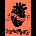 Revolution. It’s an appealing idea, especially to those who, like myself, think our political system is irredeemably fucked, and object to slimy, corrupt, overpaid wankers in suits strutting around, acting like their ability to win at the utterly meaningless game of electoral politics gives them some kind of moral authority to tell us, real people, what to do. The results of revolution have been mixed, historically, with an unfortunate predominance of tragedy and repression in their wake, but the most successful examples have been those, like most of the late 1980s transformations in Eastern and central Europe, that were genuinely mass movements, with generalised aims, rather than those led by specific groups with detailed agendas. Doll Fight! definitely have an agenda, but their idea of revolution seems to be all about people taking charge of their own identity and determination. ‘Plastic Revolution’ reminds us of just how much cultural repression still constrains women’s lives in the supposedly liberated developed world. These women are having none of it though, and in ‘While Egypt Was Burning’ they state their allegiances: ‘we stand in solidarity…’ This is what political music has lost: in recent years, for the most part, it’s been so busy being ironic, witty, nuanced and analytical that it’s lost its direct, barricade-building potency, its heart. Well, like the heart standing in for a clenched fist on the cover, Doll Fight! are putting the heart back in. Musically, this EP is not a revolution, but it is very creative, and a lot more clever than it appears on its guitar-punk surface: ‘Jealousy’ is a slow, churning grind of ominous minor seconds that reminds me of Black Flag; ‘Eris is Anarchy’ has an edgy incoherence that befits its Discordian stance; the excellent vocal performances exploit the full expressive potential of anger, challenging stereotypical gendered responses with a sometimes hectoring tone, as if daring the unreflecting listener to label them ‘shrill’. This is direct action in a noise. Revolution Doll Style Now is an intelligent piece of work, and a great listen. There’s a real sense of growth from their accomplished first release, and a sense that they’ve taken their own advice, to ‘be the art you want to see’.