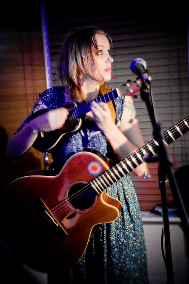 As I said at the outset, I’m very well acquainted with She Makes War’s recorded output, which is quite intricately assembled, and I was filled with curiosity as to how she would realise her material live. She took a variety of approaches, from the straightforward strum-and-sing to the clever layering of vocal loops. The loop pedal was definitely her secret weapon in presenting her material, enabling a really varied and engaging set of arrangements; I hadn’t really noticed how many of her songs are based round short, repeated chord sequences, which she was able to bang out quickly on her ukulele before switching to guitar. ‘Delete’, from her latest Little Battles was a high point for me, with its clever and appealing layers of vocal rhythms. A couple of songs were delivered without trickery via a graunchily (I may have just invented that word) distorted Telecaster, at volumes that were ear-bleeding by the standards of the otherwise acoustic night. And I happen to be very keen on electric guitars at ear-bleeding volumes (especially Telecasters, also the weapon of choice of Rose Kemp, one of my favourite musicians of all time, who I was slightly reminded of by this brief outbreak of racket). She Makes War is a consummate performer, who looks after every aspect of her presentation, from the visual to the sonic, in great detail; she’s a real musician’s musician, never missing a chance to improve an arrangement with a well judged tweak, although her songs all stand up extremely well on their own. I was slightly surprised by her stage demeanour, I have to admit, which was considerably more nervous than I anticipated; I guess I’d expected supreme confidence from someone whose branding and online presentation is so brilliantly executed, but her manner was approachable and appealing. Her set was definitely the night’s acme of awesomeness (sorry Chris), and it was well worth the wait to finally hear her in the flesh.