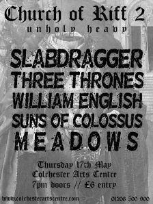 What a lineup. Any casual punter could readily be forgiven for being carried out in a box. Not that the sounds on offer were remotely toxic; on the contrary, they were entirely wholesome nut cutlets of crunchthudriffery, but seriously, heavy things can crush you, and things as heavy as this can crush you flat. Perhaps that’s why Colchester Arts Centre is ‘never knowingly understood’: stand under this sort of malarkey and you can wave goodbye to three-dimensionality.