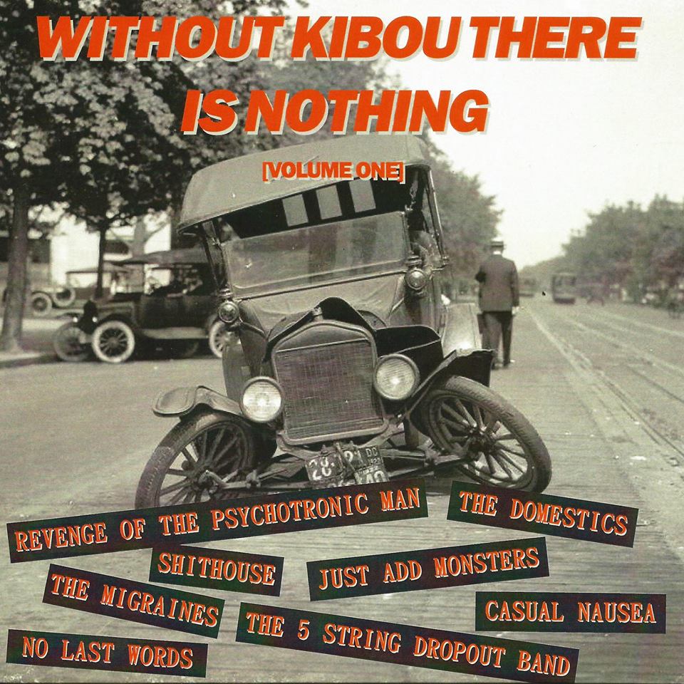 Twelve minutes is a respectable length for an EP, but with eight tunes on this disc they’re still pretty much crammed in, none of them clocking in closer to two minutes than one-and-a-half. If you think that makes this sound like a sampler, you’d be very wrong: although these bands clearly have much more to say than can be heard here, these eight songs are perfectly concise and self-contained distillations of energy, political rage, atavistic catharsis, humorous aural vandalism or whatever the appropriate term may be (and I’m sure it’s different for each song). What the eight bands collected on Without Kibou There Is Nothing have in common is an allegiance to the frantic and hair-raising end of the punk-rock spectrum; but although it’s pretty much all flat-out intense, the songs are also accessible, rabble-rousing anthems. Rackety without drifting into the avant-garde, and fun without drifting into pop, for me these bands strike the perfect balance; there’s clearly a single coherent aesthetic sense informing the curation of this music. This is the work of James Scott of The Domestics (their stirring ‘Self Abuse’ is the second tune), whose record-releasing and distro nom-de-guerre Kibou Records is; his enthusiasm, commitment, educated ear and activist approach to music could and should serve as an example to the wider music industry. Motivated by a love for the sounds, and informed by a collector and a fan’s awareness of what makes a great release, he’s come up with the sort of record that could disappoint nobody (except those who would have no business buying it in the first place). Before you even hear it your first encounter with this record will be startling, its translucent red vinyl blotched with exploding black bile making it physically fetish-worthy as an object, irrespective of its contents, and the cover is adorned with a collection of photos as brilliantly curated as the music. The whole package is a joy, inside and out, a gripping listen and a tactile treat; if you like hardcore punk, you should buy it. The easier we make it for Scott to break this even, the sooner we’ll see more excellent releases on his young label.