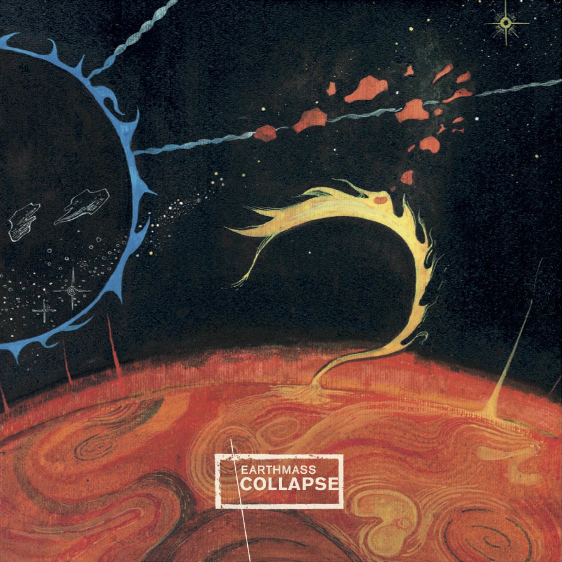 When you pull music apart and start to think about it, it often appears to be built up in several ‘dimensions’. These are our modes of perception, rather than qualities with the same independent existence as the the different materials that go into making a house for example, or the elements that compose the Earth’s lithosphere, but much of the time we (and especially musicians) treat them as tangibles. It is much easier to separate such ideas as ‘texture’, ‘timbre’, ‘volume’, ‘tempo’, ‘intensity’, ‘mode’, or ‘time signature’, and to treat them as more or less stable, given quantities, rather than continually to question and examine the cargoes of these conceptual containers, or to emphasise their interdependence and contingency. Take these things as our lego bricks, and we can get on with building musics. Conventional Western conceptions of music, be they in the Classical, jazz or popular traditions, have tended to idealise the idea of organic wholeness, assuming that the ‘best’ music will hold all of these qualities in a hierarchical balance, with melody in charge and harmony serving as its bureaucracy, keeping the peasants of rhythm and timbre in their proper subordinate places; but much creative mileage has also been made out of interfering with this ‘natural order’. Such practices have not been restricted to the avant-garde, but much of that work has been in the peripheries of musical culture: musical ‘dimensions’ have been reordered within the hierarchy, de-emphasised, eliminated altogether, foregrounded until they dominate the entire musical work, or treated in such a way as to question the boundaries that separate them from other qualities. It’s easy to point to such strategies in twentieth century Classical music, but they can be found everywhere, building alternative narratives in a variety of commercial mainstreams. In the world of metal there has long been an avant-garde in which the traditionally dominant qualities of rhythm and melody have had their privileges rescinded, with performances increasingly focused instead on texture, dynamics and the sheer geologic power of the music’s orchestral resources. Earthmass belong to this tradition of doom and drone metal. The appositely titled Collapse evinces a disciplined narrowness of scope, without actually abandoning interest in melodic or rhythmic excitement, outlining its compelling epic narrative primarily in the field of dynamics, which are employed as subtly and and as devastatingly as Thor employs his hammer.