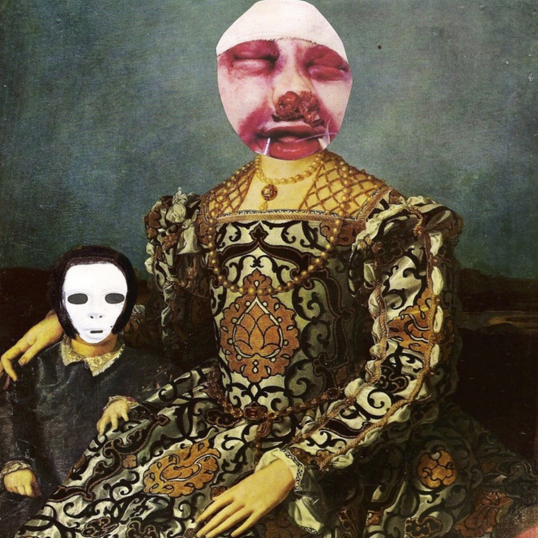 The instrumental resources of these arrangements put them firmly in rock territory, but they aren’t saturated with guitar, and there are forays into melodic terrain, from both lead guitar and saxophone, that is clearly indebted to jazz. The gritty, trebly, picked bass sounds that Reaks sometimes favours are reminiscent of post-punk and new wave, but he is also prone to employ a deep, round bass and counterpose it to upper-register delays in a distinctly dubby fashion. These songs are all built around grooves, the kind of steady, methodical grooves that are as characteristic of electronic dance music as they are of rock: they don’t tend to be aggressively syncopated like funk, but they are certainly compelling, and they sound as though their intended audience is one that may well be dancing as well as listening. Several tunes feature keyboard voices that are reminiscent of music boxes or thumb pianos, and Reaks has a liking for layers of syncopated figures (in the guitar as well as keyboards and percussion) that are equally reminiscent of African percussion ensembles (forgive my ignorance, I know that’s extremely general) and of Minimalist art music compositions. Outlining a similar aesthetic, or contributing equally to this album’s aesthetic, which is nothing if not coherent, are the layered vocalisations that Maria Jardardottir contributes at the close of ‘Crystal’; this talented and creative singer’s offerings throughout are as beautiful as they are gnomic, articulated in a language that I am unfamiliar with, and which she gives the impression she may have invented. What sounds like a flute on ‘Hyper-Diseasy’ is presumably the bass recorder that Kemp is credited with, and I mention it simply to indicate the range of resources that Reaks brings to bear. These are complex arrangements, as richly textured as his collages, and though they are far from conventional, they are very appealing to the ear, producing a sense of a habitable space, full of creative agents, a place to which the listener seems to be invited, a place of beauty, communality and play. Such a range of sources and influences, described in the abstract, might suggest something bitty and eclectic, but I am merely struggling to tease apart the threads of a tight-knit fabric, one that feels as solid as the product of a tradition, although to be honest, I’ve never heard anything quite like it. There is a powerful sense of stylistic stability, of meaningfulness, of personal expression in the music, but this is only part of the story.