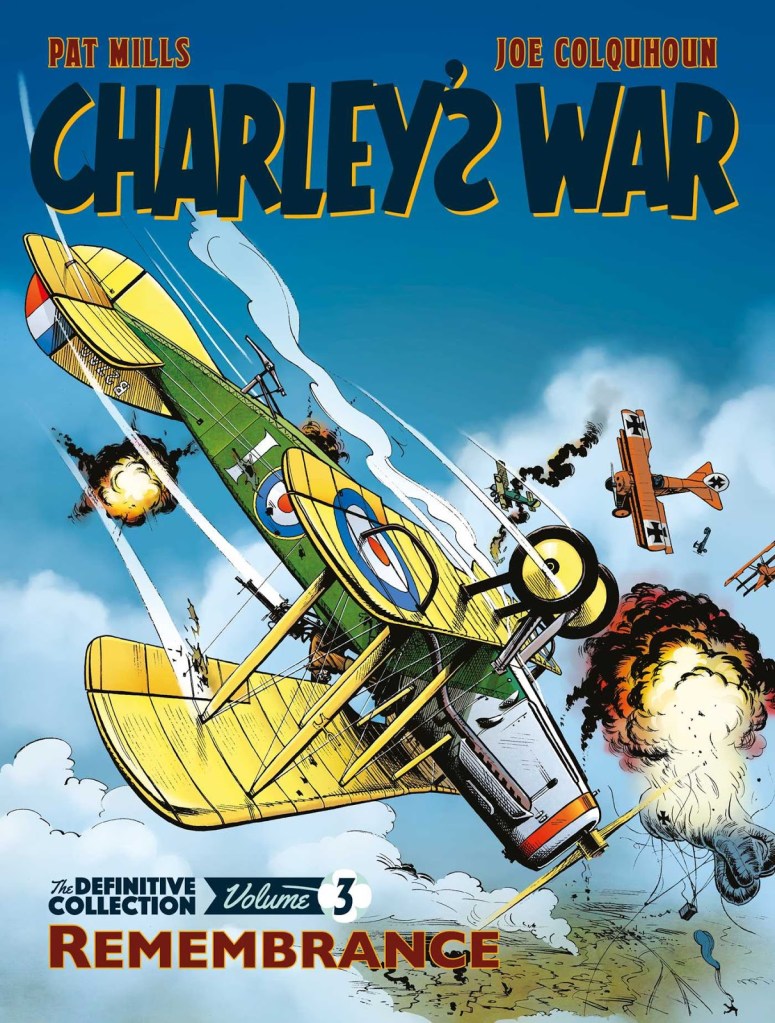 It’s subtly positioned and easy to miss, but beneath the volume number, and below Rebellion’s logo on the spine, on each volume of this beautifully re-issued Charley’s War omnibus, is a white poppy. Nobody reading this could possibly miss Pat Mills and Joe Colquhoun’s intentions, but the old Titan Books editions had the traditional red poppy on its covers, despite all of its associations and the series’s obvious anti-war message. Given the continuing jingoistic character of public discourse around the First World War (or ‘The Shit War’ as it has been suggested it be called, in contrast to ‘The Great War’), this takes a certain amount of courage from a publisher.