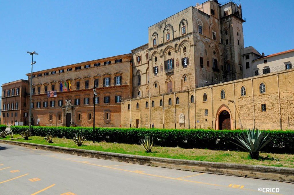 ‘Palazzo’ is a term that is bandied about quite casually in Italy, and although it is technically cognate with ‘palace’, it refers to any kind of grand residence, from the substantial townhouses of the prosperous bourgeoisie to the vast combined residences and governmental seats of dukes and bishops. The principal seat of Sicily’s Norman monarchy is clearly a palace in the English sense, an impressive Arabo-Norman edifice of considerable size, that has been extended, remodelled and modernised on many occasions throughout its long history. The Palazzo dei Normanni has been the seat of Aghlabid and Fatimid Emirs (although this phase of its architecture has largely been effaced), Norman Kings, Holy Roman Emperors and Spanish Governors, and has been the home of the Sicilian Regional Assembly since nineteen forty-six. Its architecture reflects its long and varied existence, but there is still a great deal of the characteristic Arabo-Norman facade to be seen, with its unique stylistic fusion, born in a fundamental aesthetic compatibility between Northern Europe and the Islamic Mediterranean rim.