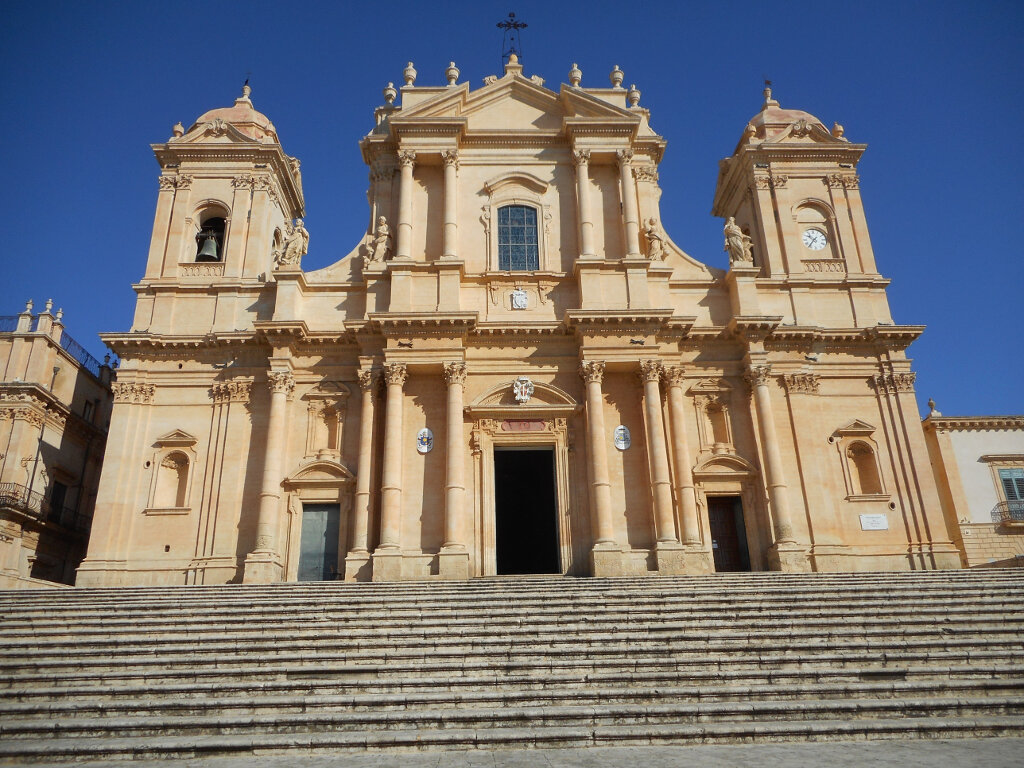 Noto, like other cities in the southeast of Sicily, is a near perfect encapsulation of the Sicilian Baroque, built on a planned grid, its buildings designed by notable architects, on a new site selected after the old city’s near total destruction in the earthquake of 1693. In contrast to Palermo it is a well-tended city, pandering far more to the tourist trade. It is a tasteful place, unmarred by the grime and graffiti of the capital, but also lacking in any signs legible to the casual visitor of the vitality and communality that are so obvious in Palermo. At first glance, its cathedral seems of a piece with its refined and tidy character, but the harmonious facade conceals a history of architectural syncretism and structural instability.