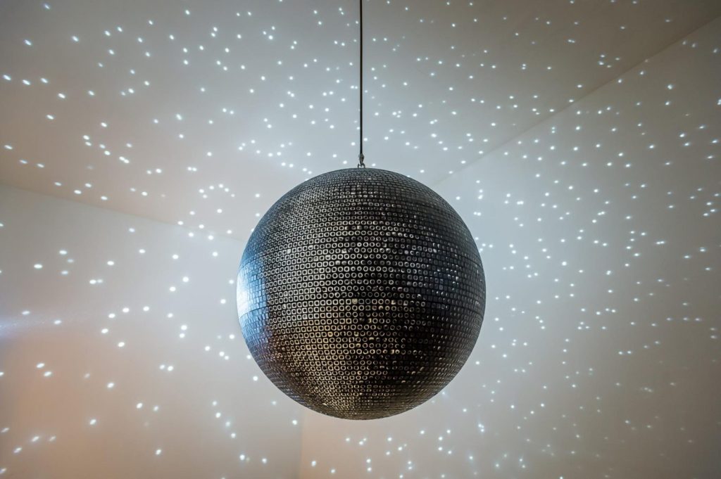 This document of Paterson’s work is not out of place in this exhibition, but it is fair to say that it’s a formally straightforward documentary film, rather than a work of contemporary fine art, and what it shows is a very partial, fractional representation of a work that no single human will ever witness in its entirety. Other works by Paterson are more present in the show. ‘Totality’ brings together almost every solar eclipse ever to be visually recorded and combines the images on the surface of a mirrorball. ‘Light bulb to Simulate Moonlight’ places the viewer in a space lit by a bulb Paterson developed with Osram to mimic the spectral qualities of moonlight, along with a supply of bulbs sufficient to provide that light for a human lifetime. Another piece, ‘Ara’, strings together light bulbs whose relative brightnesses have been calibrated to reproduce the relative magnitudes of the stars in the southern sky constellation Ara. ‘Earth-Moon-Earth’ records the elisions consequent on transmitting Beethoven’s ‘Moonlight Sonata’ to the Moon in Morse code, and then recording the reflection of the message: it appears in the show both as a framed print of the code, and as an ethereally skeletal piece of music performed by a player piano.
