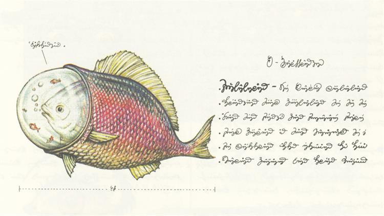 The Codex Seraphinianus is an encyclopaedia, consisting of page after page of incredibly vivid and detailed surrealist art, accompanied by reams of text in a completely asemic alphabet. Asemic means that it has no meaning—not that the meaning has not yet been discovered (although there is a busy online community attempting to discern some), but that it literally has none. The characters of the alphabet give a wonderful impression of being organised in the same way as those of a real language, but other than the numbers (it does include a consistent base-27 system of numerals which is used to number the pages) they do not signify. The images are incredibly detailed and varied, and give every impression of systematic representation of a completely impossible world. Luigi Serafini deliberately sets out to confound explanation or interpretation. He has said both that he wishes to create the sense for adults that young children have when looking at books they can’t yet understand, and that although you may think its speaking directly to you, it’s ‘just your imagination’. Think about that: ‘just’ your imagination. If you find meaning here, it’s because you yourself are creating it, and that’s a wonderful thing for a book to elicit. The book is almost impossible to describe (as you may have noticed), held in very few public library systems, and extremely expensive. When I finally bit the bullet and got myself a copy, I was not disappointed, and I’ve been an enraptured tourist in its world ever since.